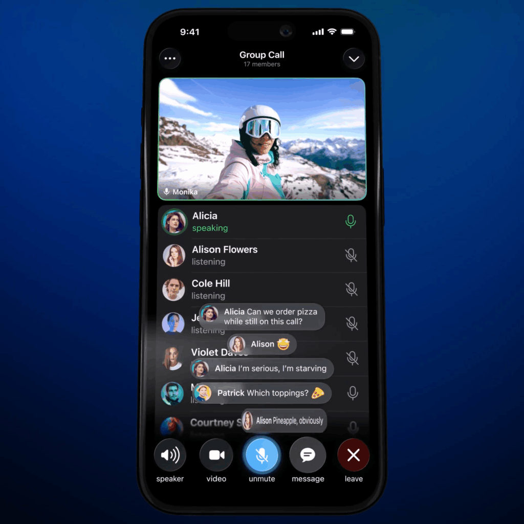 เบื่อไหมเวลาประชุมหรือไลฟ์แล้วอยากแสดงความเห็นแต่ไม่อยากเปิดไมค์? ตอนนี้ในคอลกลุ่มหรือวิดีโอแชท (ที่มีผู้ร่วมไม่เกิน 1,000 คน) สามารถส่งคอมเมนต์และรีแอคชันได้แล้ว! ข้อความและอีโมจิจะลอยขึ้นมาบนหน้าจอชั่วคราว เหมาะสำหรับใช้ถามคำถามสั้นๆ, ส่งกำลังใจ ❤️, หรือตอบรับแบบเร็วๆ 👍